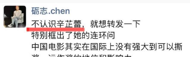 然后,一个意想不到的人也下场了,那就是著名制片人陈砺志。他贴出辛芷蕾的长文,说中国电影其实在国际上没有强大到可以撕奖、运作奖的地位和影响力。