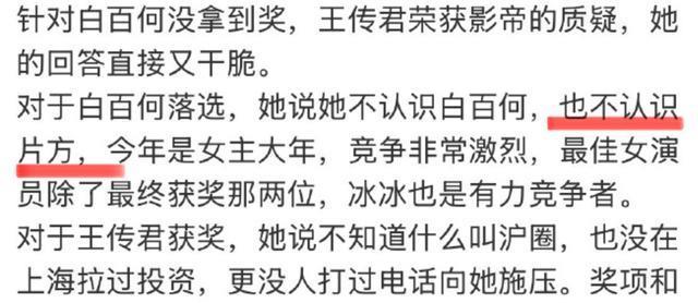 在颁奖后,文宴接受采访说不认识白百何,也不认识片方。