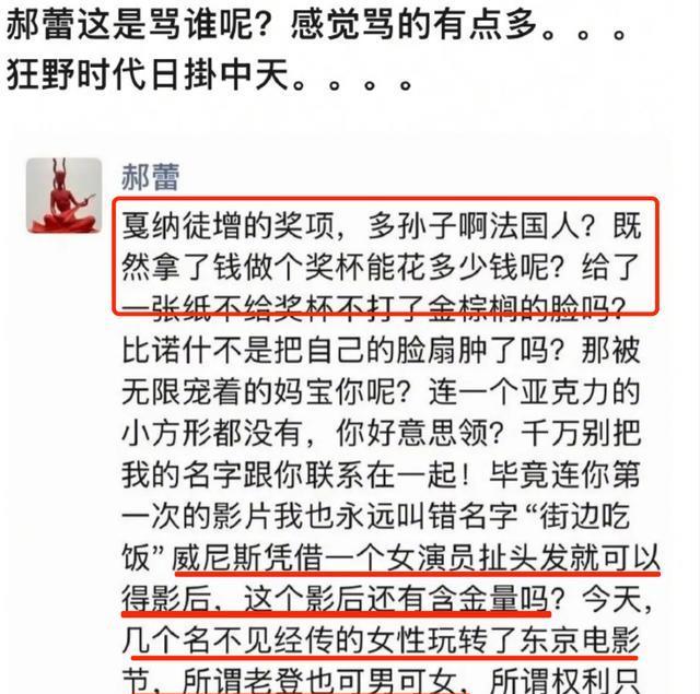 因为在这个长文里特地提到了“扯头发”这个剧情,而疑似郝蕾朋友圈的发文里也提到“凭借一个女演员扯头发就可以得影后”,这不是直接回应还能是什么?